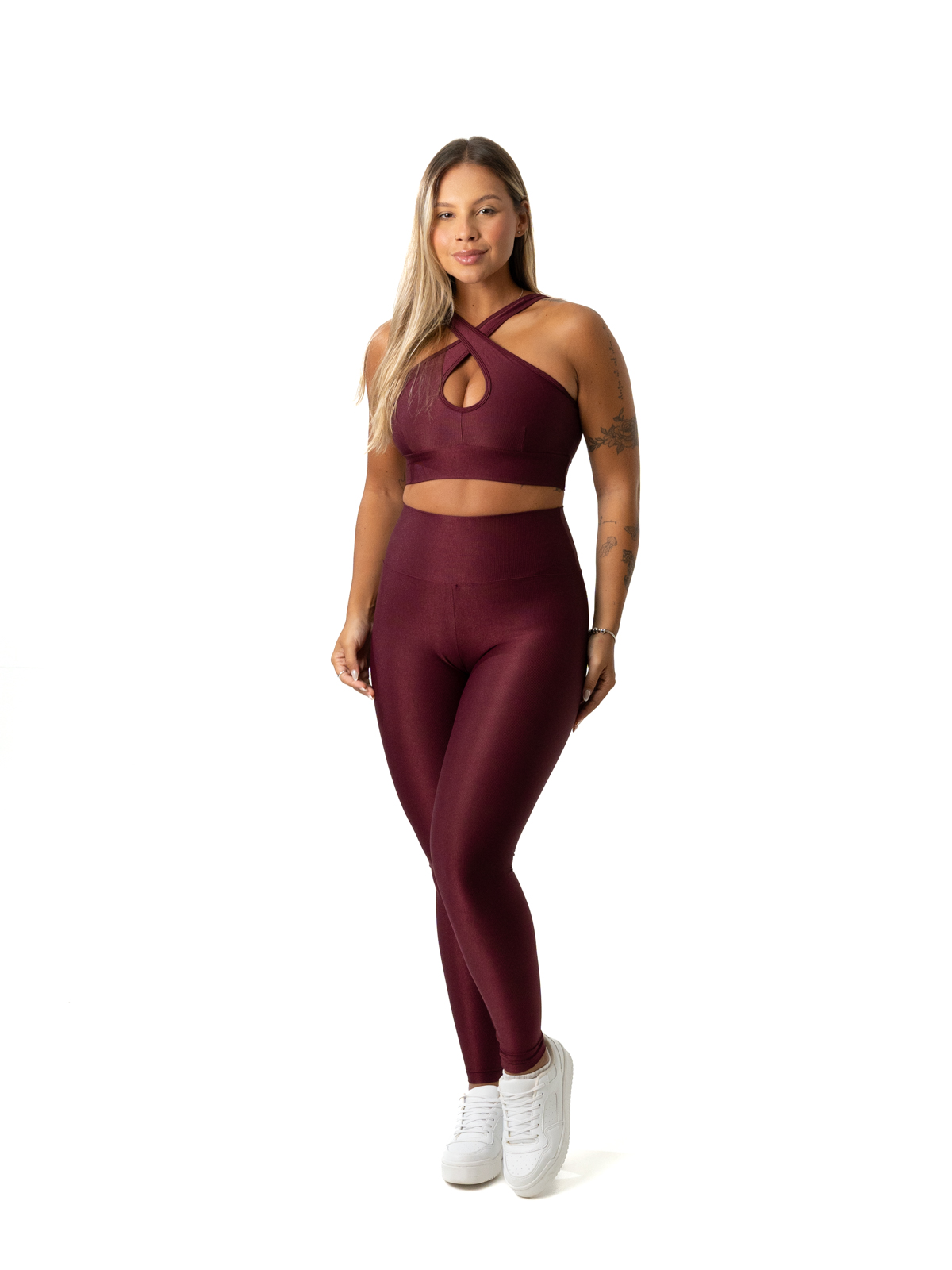 Legging + 3 in 1 Top – Dark Red Compression